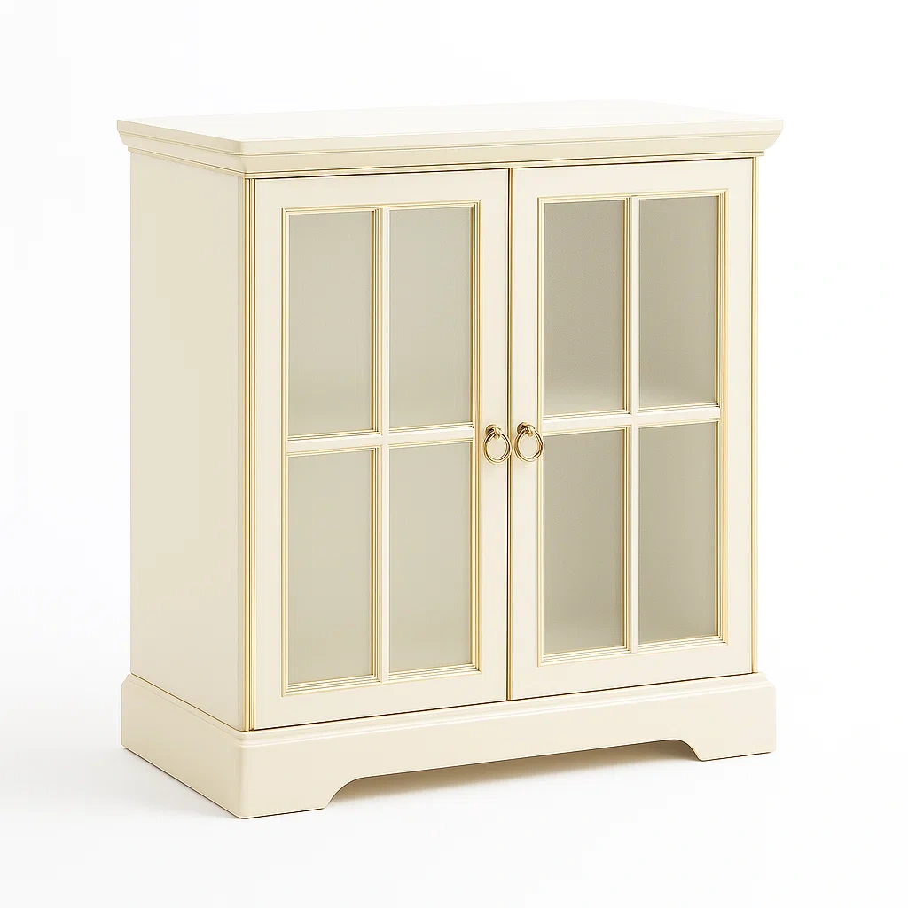 Due ante a battente con maniglie in metallo dorato.